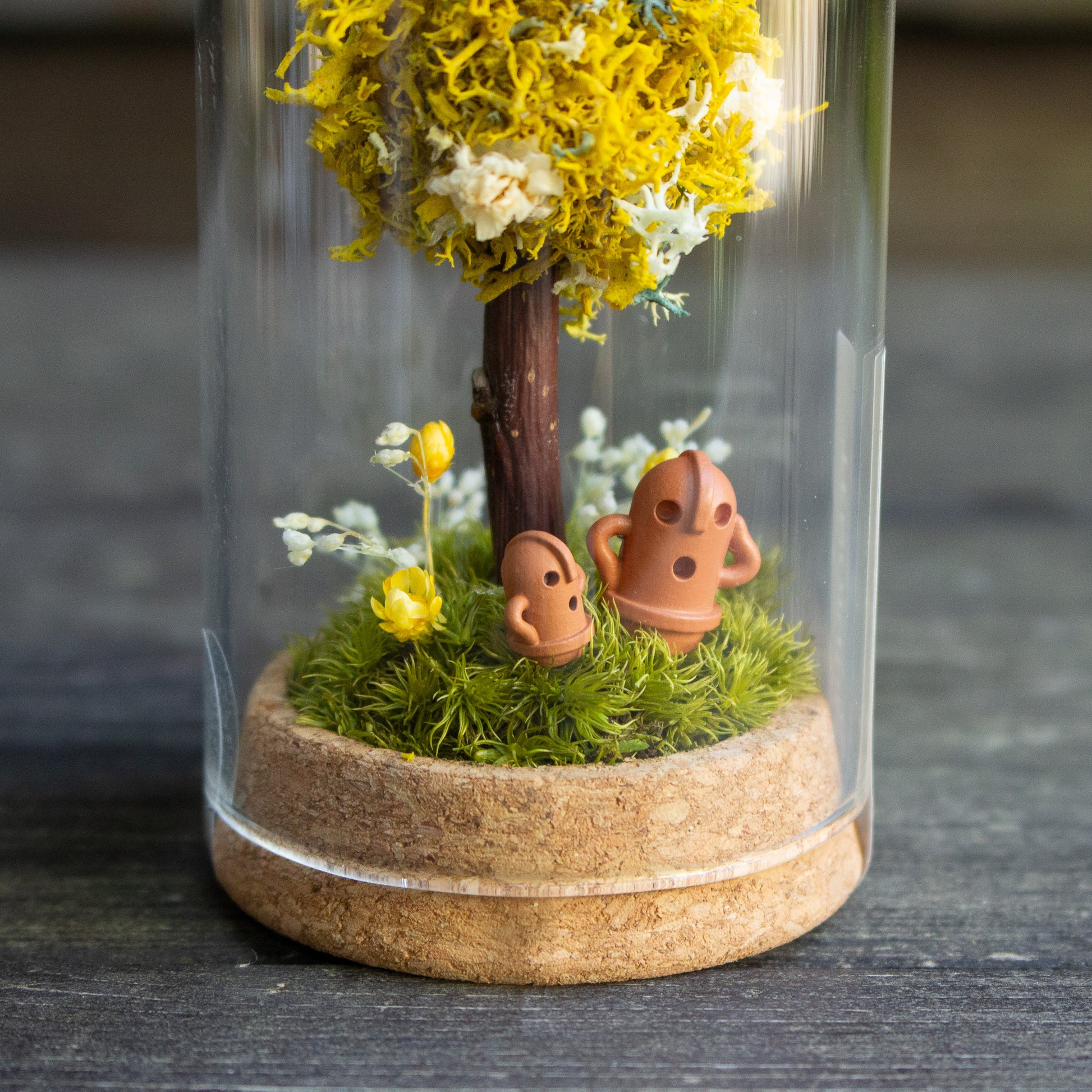 ハッピーイエロー_プチ・てのリウム [夫婦ハニワ]《プリザーブド苔テラリウム》