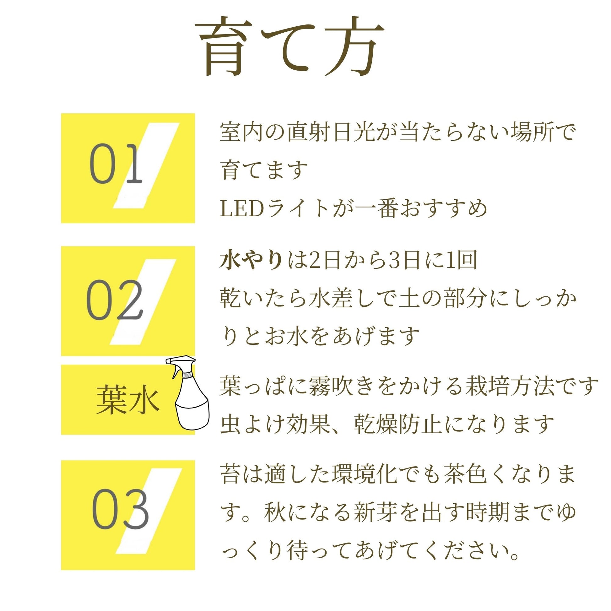 苔テラリウム同様、LEDライトを使って5時間程度ライトをあててください。