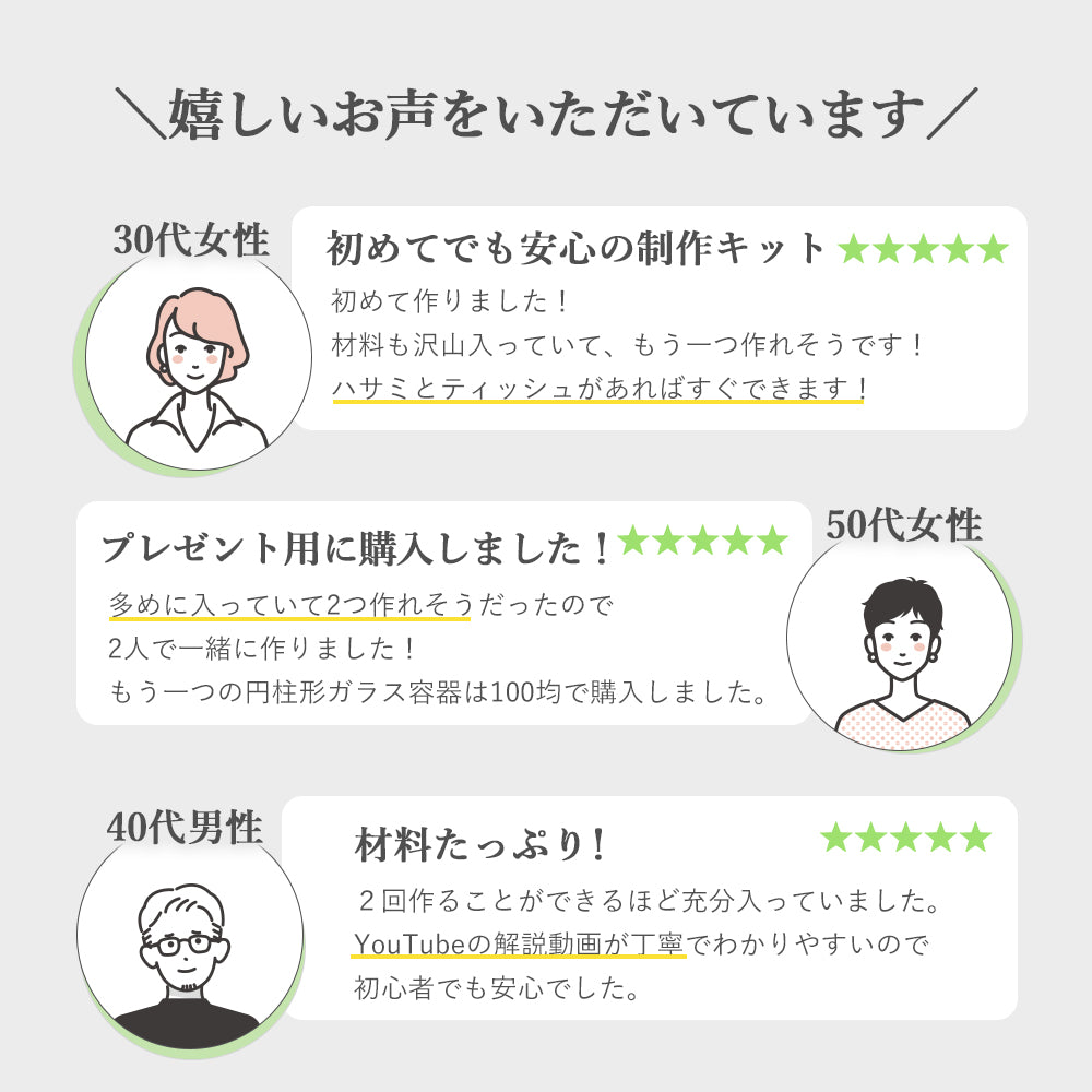 制作に必要なツールやライトがセットになっているオプションもございます。