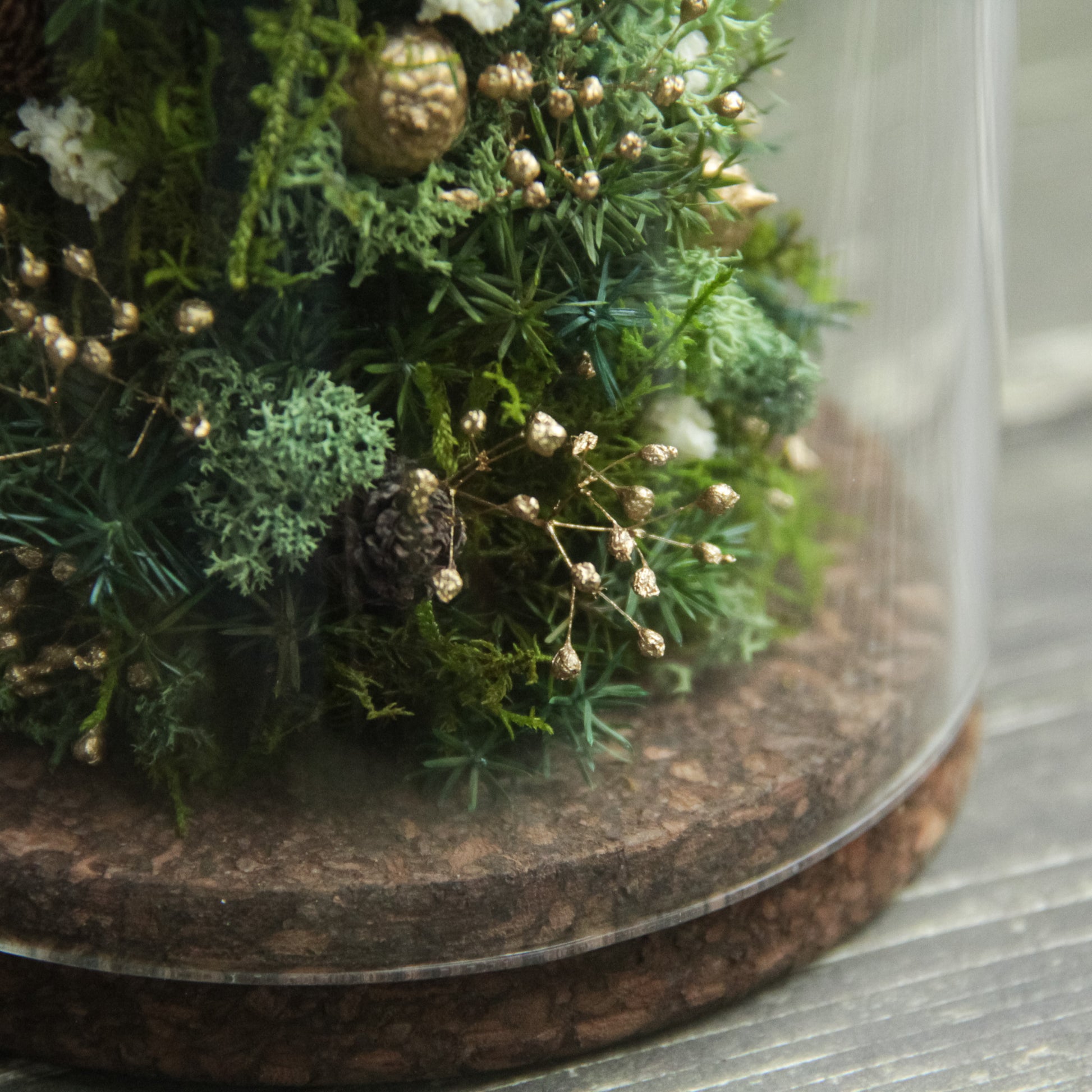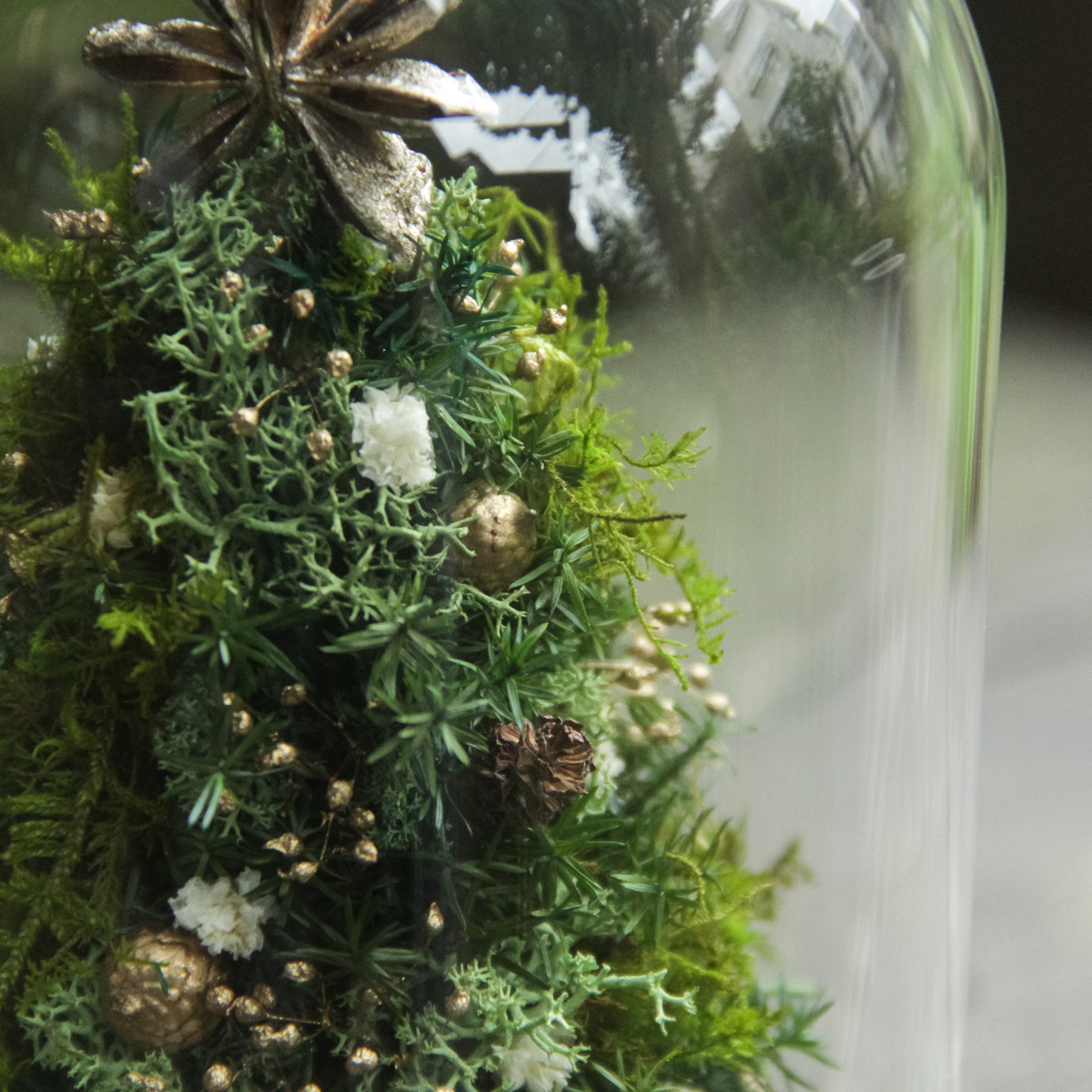 ※こちらの商品はプリザーブド加工された苔のクッションを利用したテラリウムです。